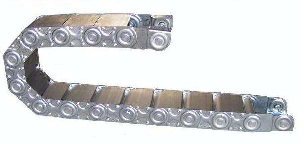 鋼鋁拖鏈的用途和特點(diǎn):適合于使用在往復(fù)運(yùn)動的場合,能夠?qū)?nèi)置的電纜、油管、氣管、水管等起到牽引和保護(hù)作用.塑料拖鏈每節(jié)都能打開,便于安裝和維修.運(yùn)動時噪音低、耐磨、可高速運(yùn)動.塑料拖鏈已被廣泛應(yīng)用于數(shù)控機(jī)床、電子設(shè)備、石材機(jī)械、玻璃機(jī)械、門窗機(jī)械、注塑機(jī)、機(jī)械手、起重運(yùn)輸設(shè)備、自動化倉庫等.塑料拖鏈的結(jié)構(gòu):塑料拖鏈外形似坦克鏈,由眾多單元鏈節(jié)組成,鏈節(jié)之間轉(zhuǎn)動自如.相同系列的塑料拖鏈內(nèi)高、外高、節(jié)距相同,塑料拖鏈內(nèi)高、彎曲半徑R可有不同的選擇.單元鏈節(jié)由左右鏈板和上下蓋板組成,塑料拖鏈每節(jié)都能打開,裝拆方便,不必穿線,打開蓋板后即可把電纜、油管、氣管等放入拖鏈內(nèi).另可提供分隔片,將鏈內(nèi)空間按需要分隔開.
